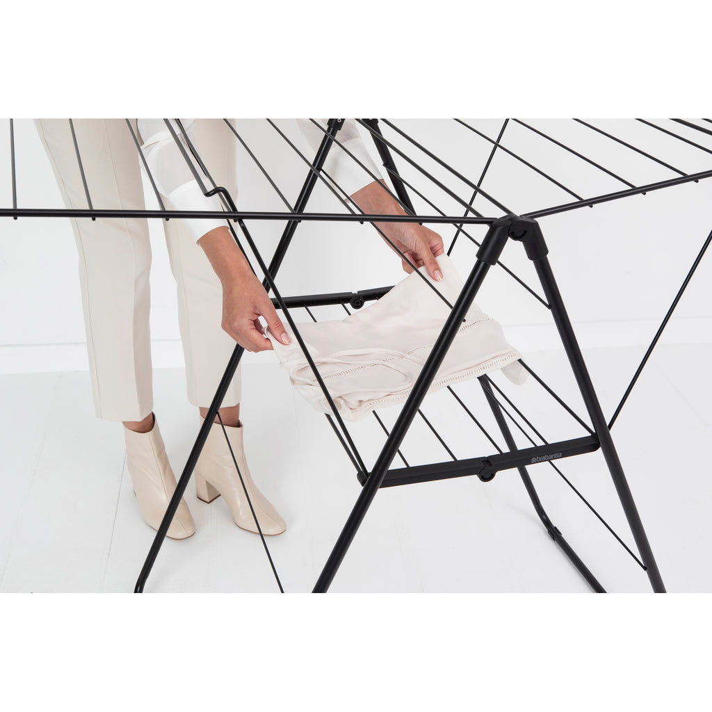 Save time and energy by drying your laundry naturally - and save space by hanging them on this smart rack! With 25 meters of flexible drying space, and room for 8 extra clothes hangers, this HangOn Drying Rack sure is spacious. And when all’s dried and done, fold it flat easily for compact storage. Let's hang out!