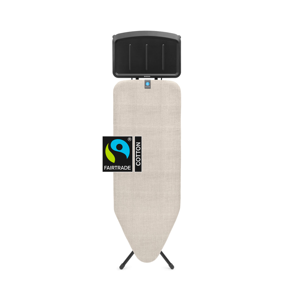 Big is beautiful. And easier for ironing! This plus size steam Brabantia ironing board C with steam unit holder gives you 124 x 45 cm of ironing space and saves you the hassle of moving your laundry around on the board. With a metal holder strong enough to hold your steam unit, a sturdy adjustable frame and renowned Brabantia quality, this XL board is a great addition to your life. And thanks to the cover made with 100% Fairtrade Cotton, it helps make the lives of farmers better too!