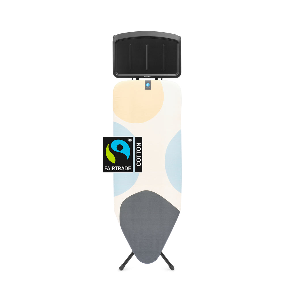 Big is beautiful. And easier for ironing! This plus size steam Brabantia ironing board C with steam unit holder gives you 124 x 45 cm of ironing space and saves you the hassle of moving your laundry around on the board. With a metal holder strong enough to hold your steam unit, a sturdy adjustable frame and renowned Brabantia quality, this XL board is a great addition to your life. And thanks to the cover made with 100% Fairtrade Cotton, it helps make the lives of farmers better too!
