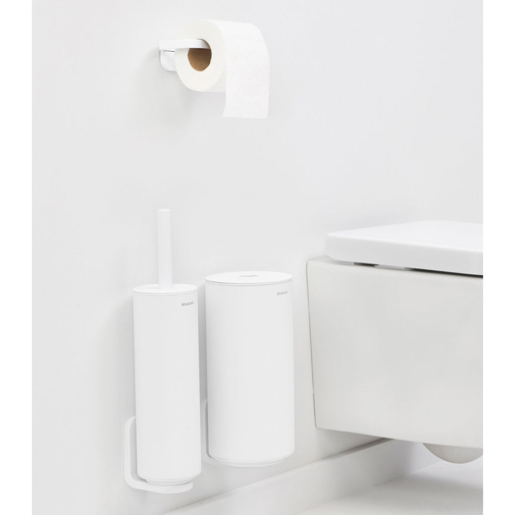 The Brabantia MindSet Toilet Accessory Set starts off with a strong and hygienic toilet brush and holder. The minimalist toilet roll holder keeps toilet paper always at hand, and the toilet roll dispenser discreetly holds up to two rolls.
