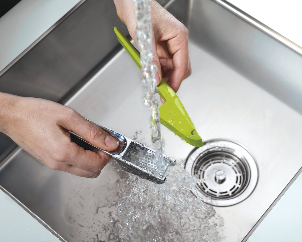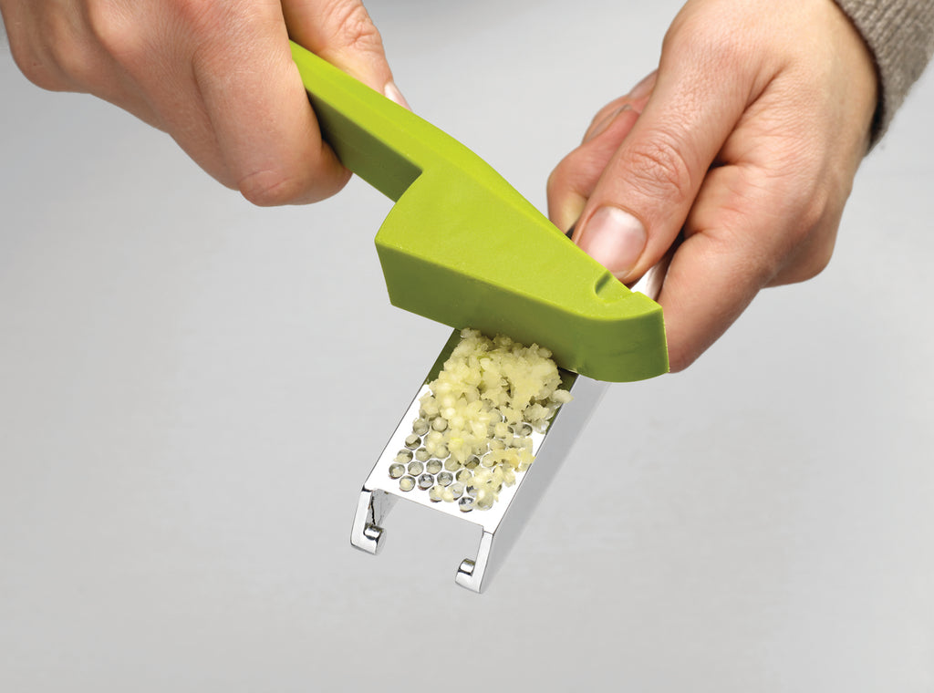 This clever 2-piece garlic crusher includes a scraping tool to remove the garlic once the cloves have been pressed so you can avoid any mess or garlic smell on your hands.