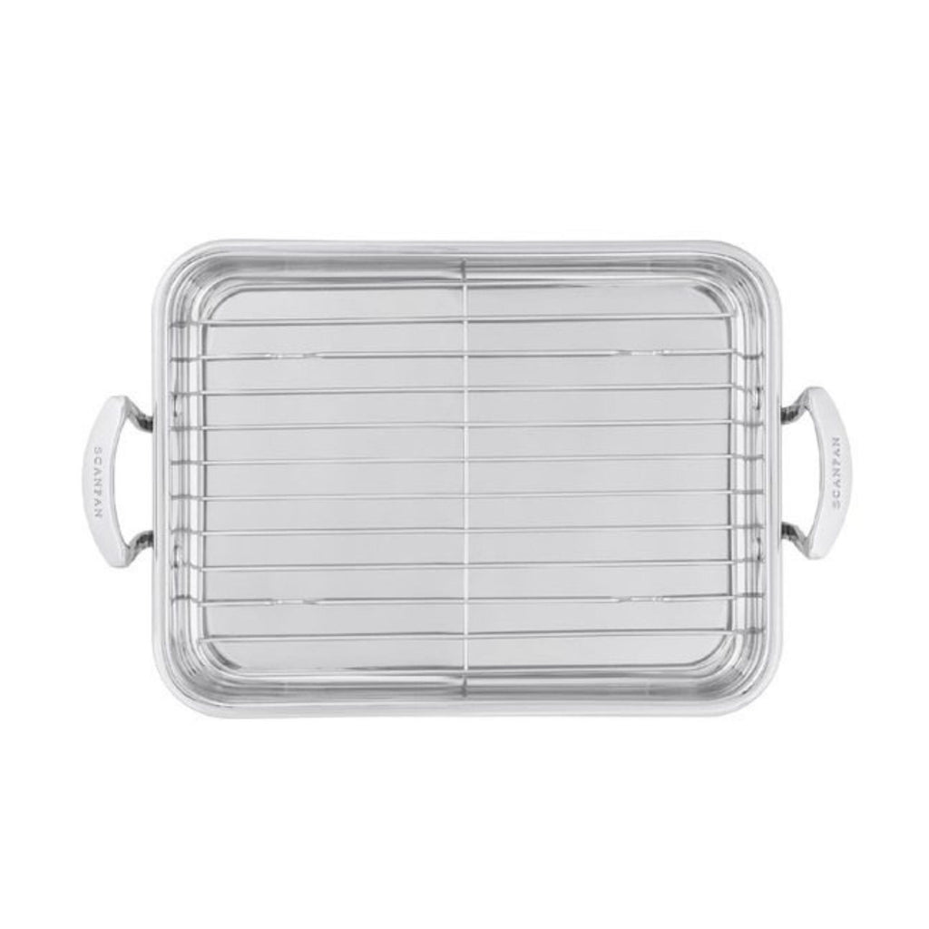The Scanpan Impact Roasting Pan with Rack combines professional-quality performance with user-friendly design, making it a must-have for home cooks and culinary enthusiasts alike. Elevate your roasting and baking experience with this premium cookware essential!
