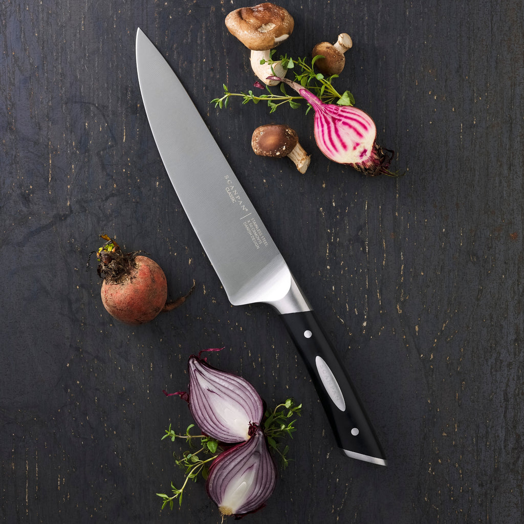 The Scanpan New Classic Chef Knife, 20cm is an essential tool for any kitchen, whether you're a seasoned chef or just starting out. Designed for precision, comfort, and long-lasting durability, this knife allows you to take on a variety of tasks with ease, making food preparation smoother and more enjoyable.